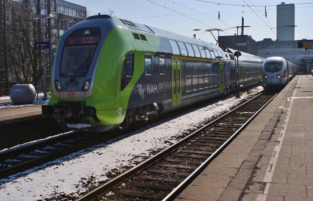 445 039-4 fährt am 10.2.2018 als RE7 (RE21119) von Kiel Hauptbahnhof zusammen mit 445 041-0 als RE7 (RE21069) von Flensburg in den Hamburger Hauptbahnhof ein. Alexander
