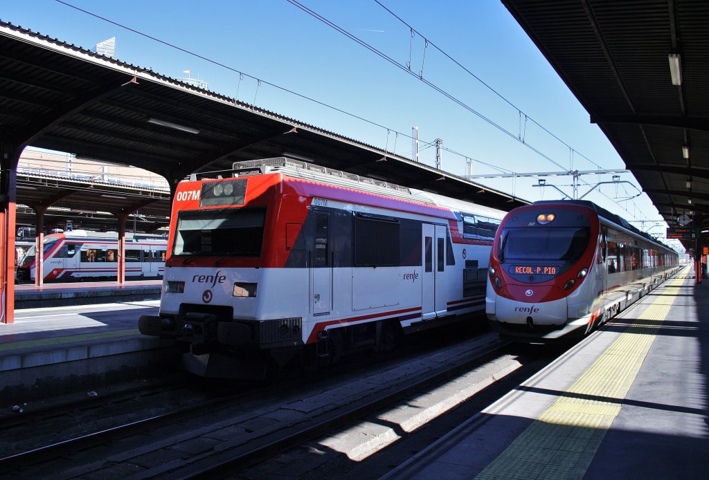 Hier links 450 007-0 als R17006 von Madrid Chamartin nach Atocha Villal und rechts 465 098-5 als R17101 von Madrid Chamartin nach Recol-P. Pio, diese beiden Triebzüge standen am 11.3.2012 in Madrid Chamartin. Alexander