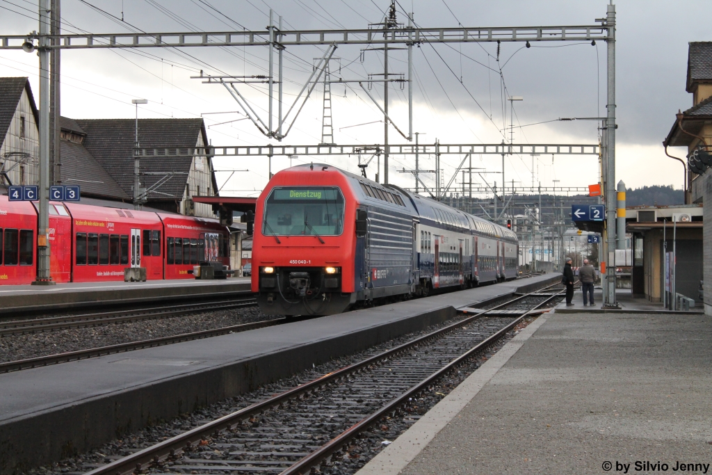 Re 450 040-1 ''Hinwil'' am 27.1.2013 in Oberwinterthur als Dienstzug nach Seuzach.