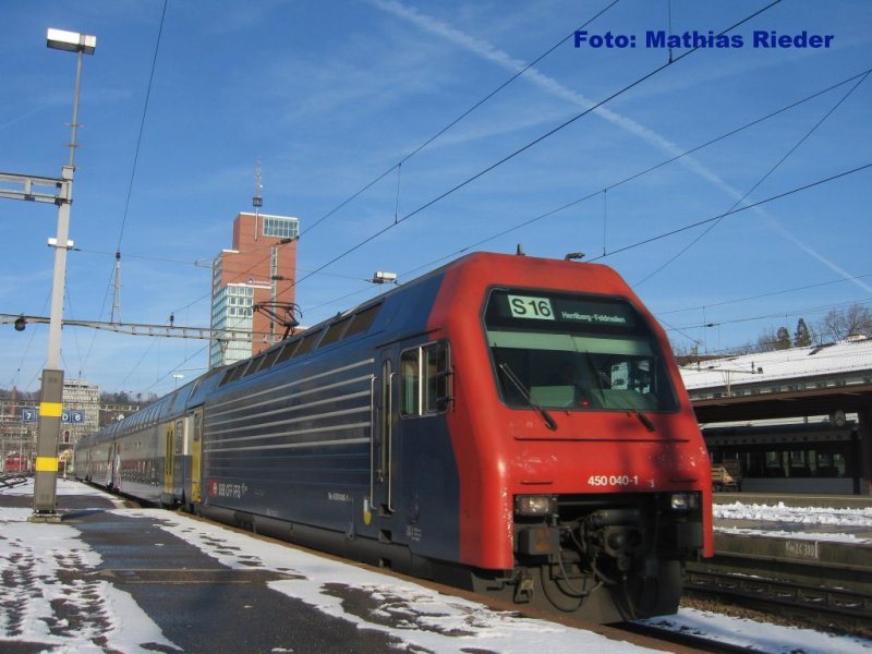 Re 450 040-1 auf der S 16 von Thayngen nach Herrliberg- Feldmeilen bei der Einfahrt Winterthur am 15.02.09