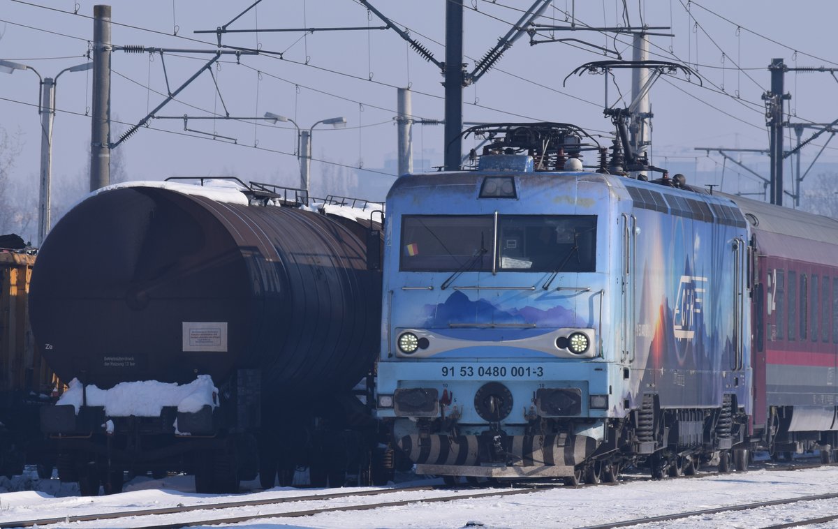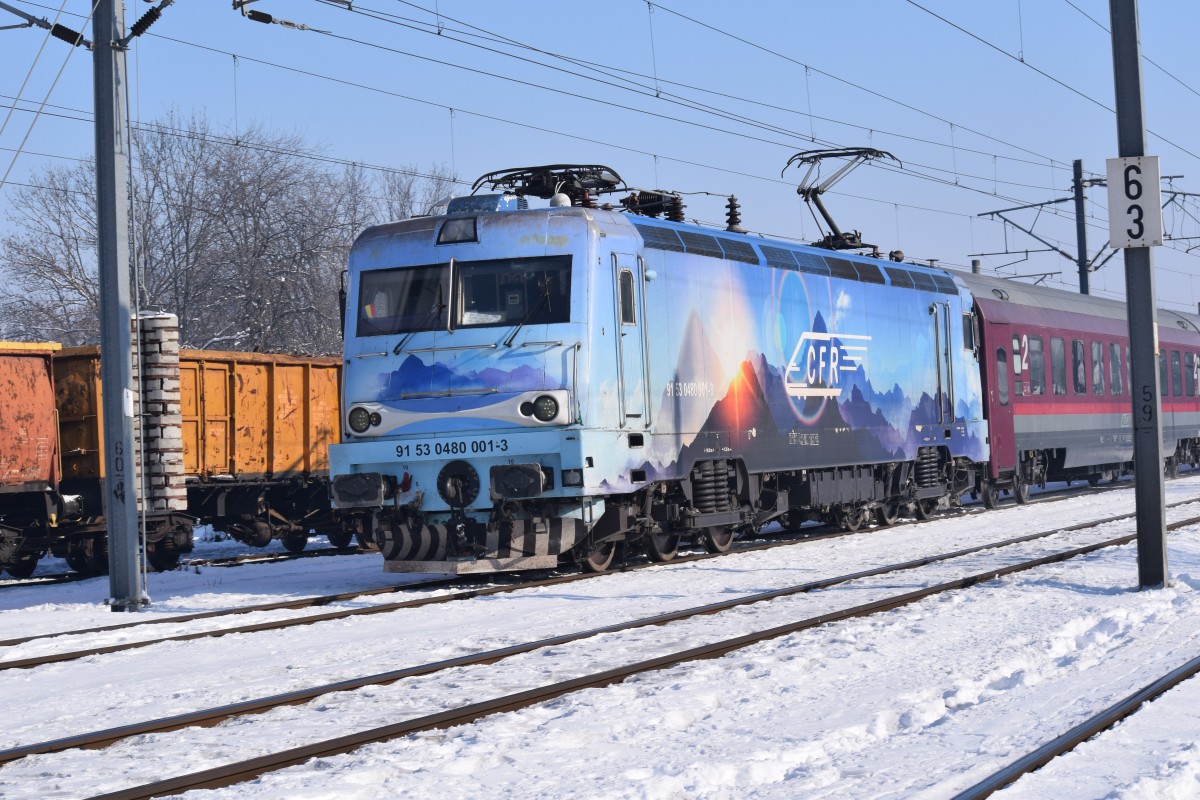 E-Lok 480-001-3 mit PErsonenzug aus Richtung Constanta durchfährt Bahnhof Bucuresti Baneasa am Vormittag des 24.01.2016.
