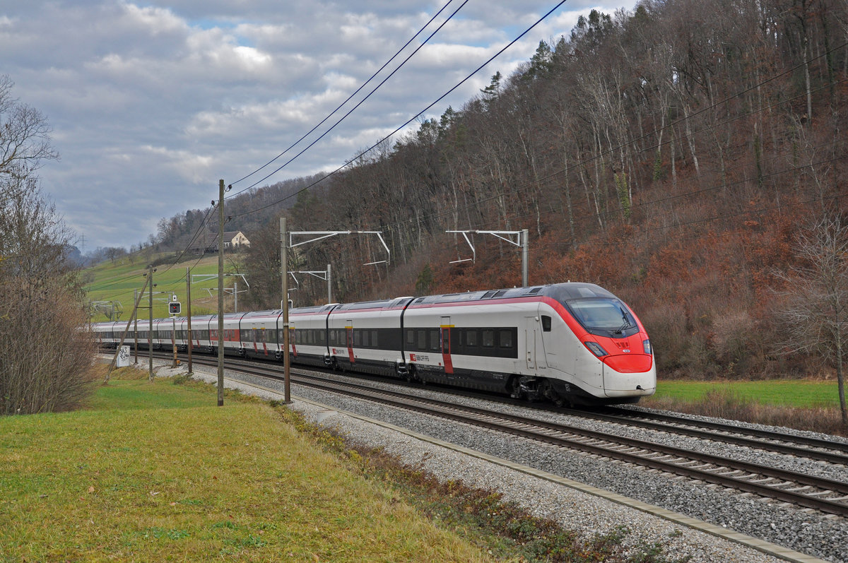 RABe 501 023-2 Giruno fährt Richtung Bahnhof Tecknau. Die Aufnahme stammt vom 19.12.2020.