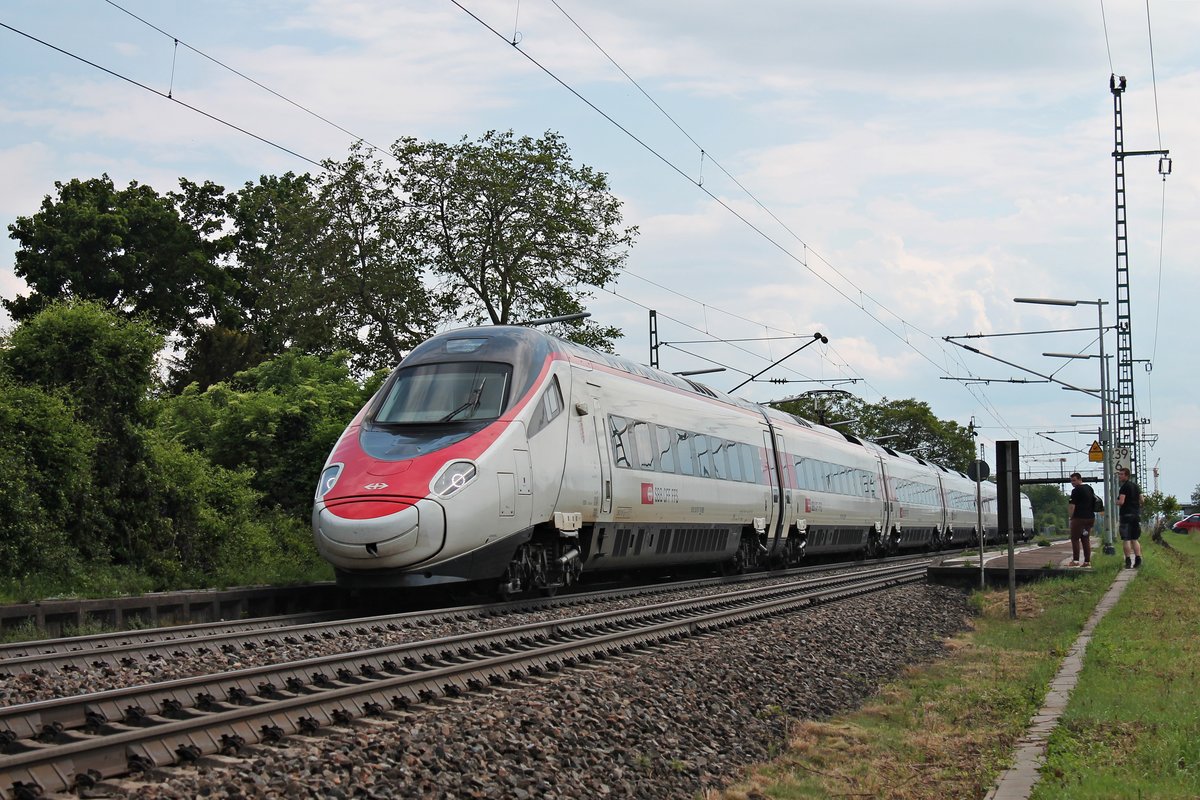 Durchfahrt am Nachmittag des 25.05.2019 von RABe 503 013-7 als ECE 52 (Milano Centrale - Frankfurt (Main) Hbf) durch den Haltepunkt von Auggen im Markgräflerland in Richtung Freiburg (Breisgau). Tobias Schmidt