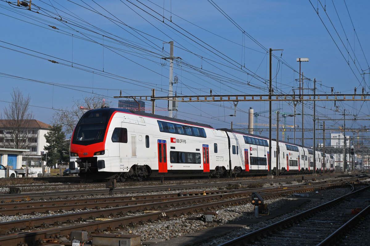 RABe 512 015-4 KISS durchfährt am 20.02.2025 den Bahnhof Pratteln.