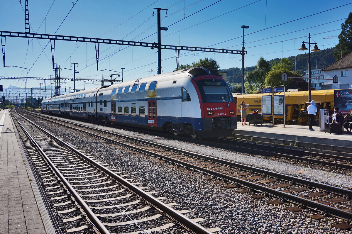 RABe 514 031-4 fährt als S2 18234 (Ziegelbrücke - Zürich HB - Zürich Flughafen), in den Bahnhof Pfäffikon SZ ein.