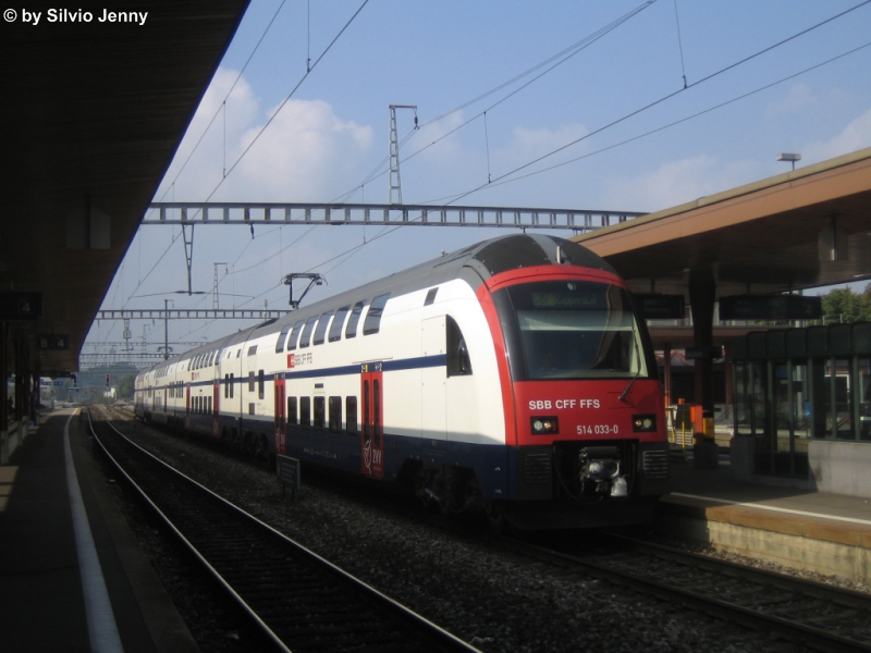 Nachschuss von RABe 514 033-0, bei der Ausfahrt aus dem Bahnhof Pfäffikon SZ.