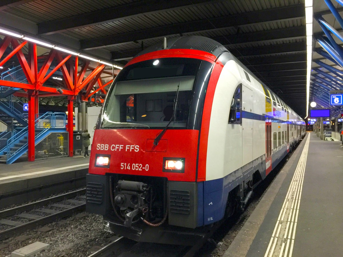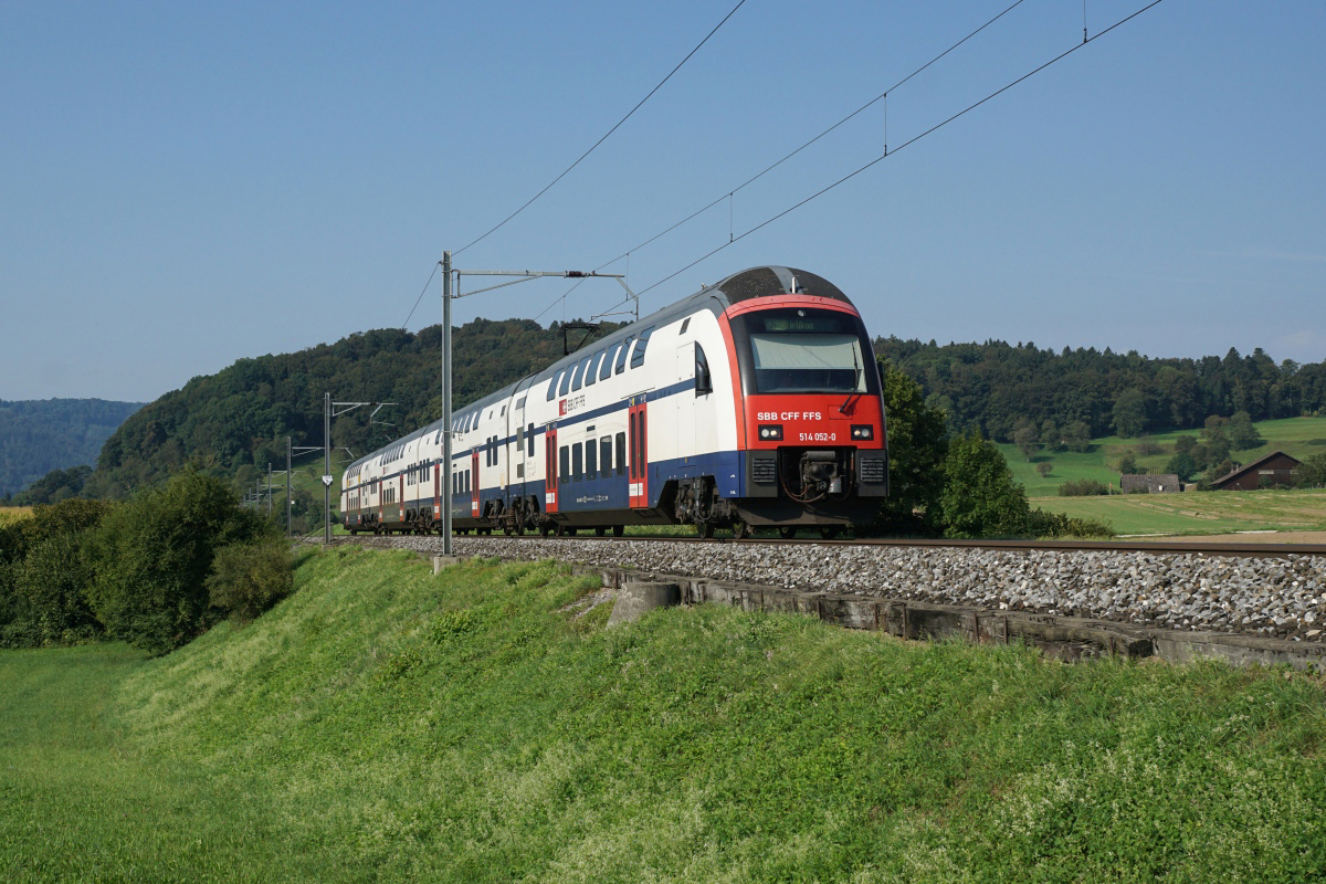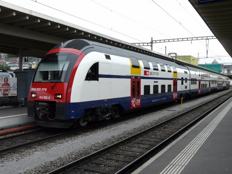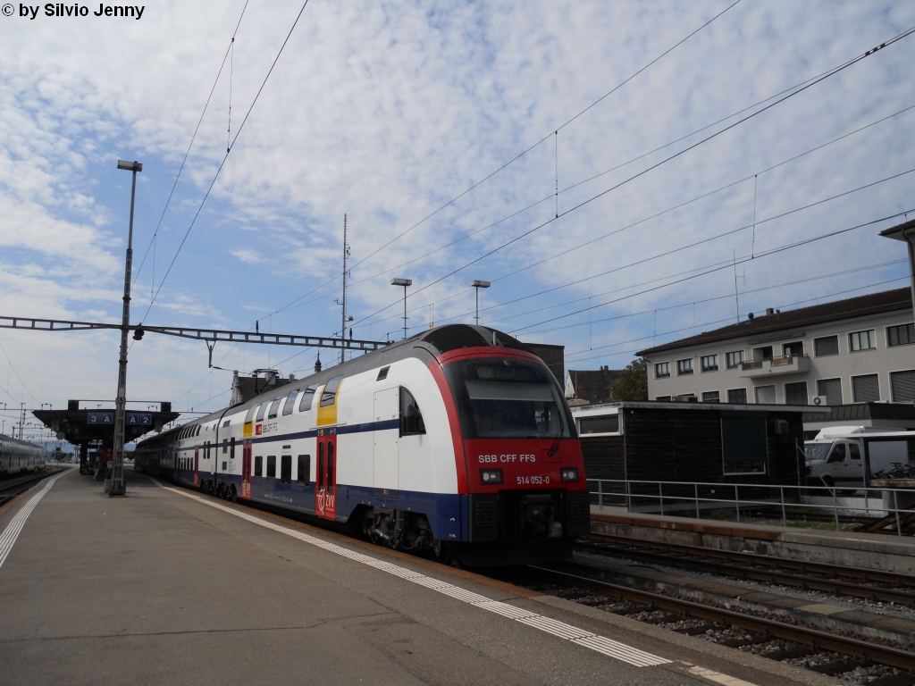 Wenn man in Rapperswil durch die Unterführung läuft, so sieht man schnell die FIA's (Fahrgast Informations Anzeige), genauer hinsehen tut man, wenn dort ''Ersatzzug'' drauf steht, und siehe da, statt einem normalen NPZ fuhr ein DTZ ins Glarnerland, RABe 514 052-0 verlässt am 5.9.2010 Rapperswil als Regio 7755 nach Linthal. Silvio Jenny