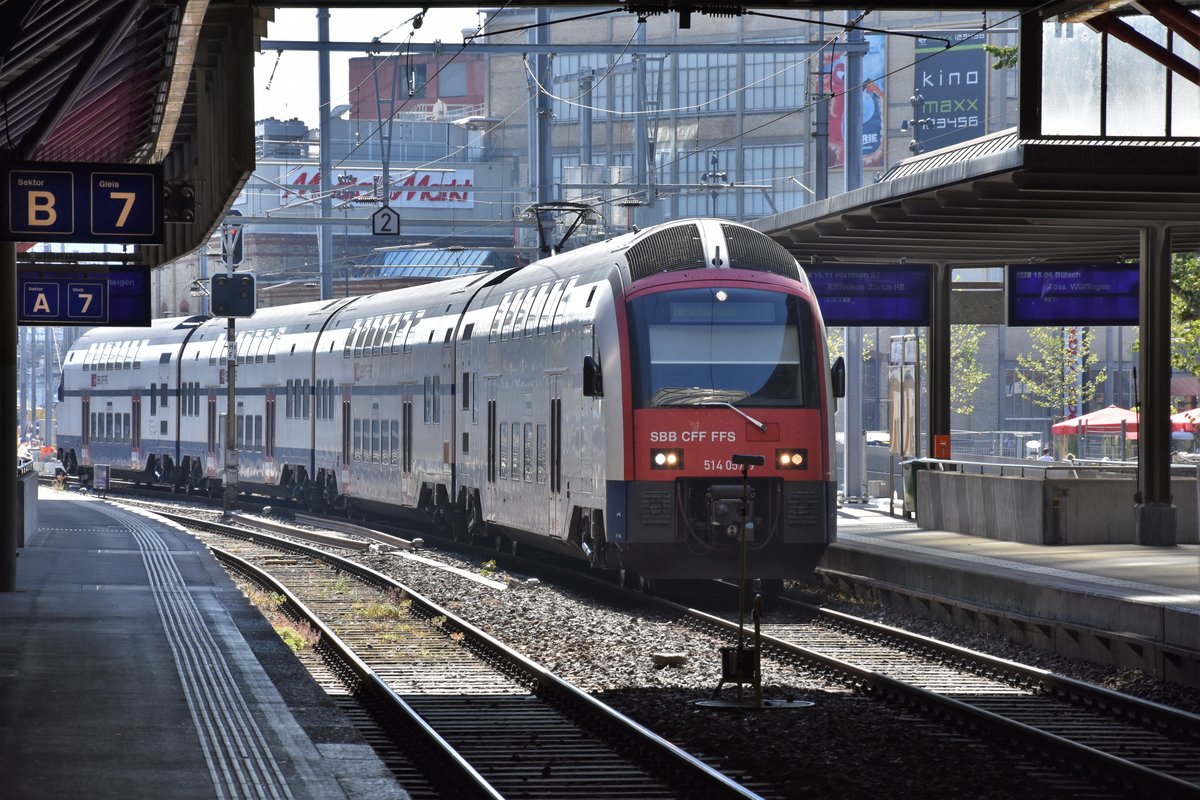 WINTERTHUR (Kanton Zürich), 13.09.2016, Doppelstockzug 514 057-9 bei der Einfahrt in den Bahnhof Winterthur