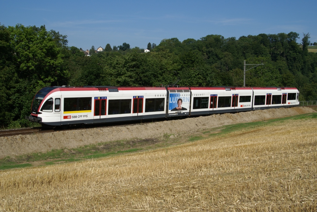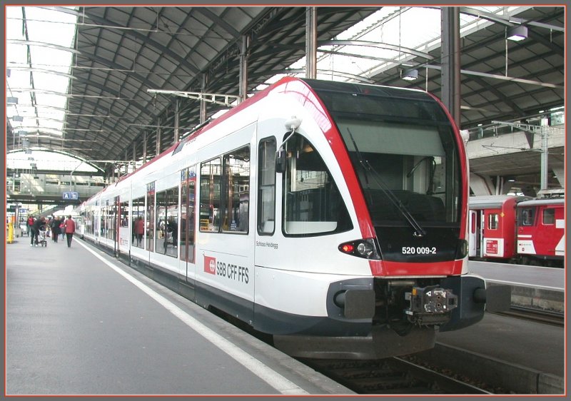 GTW 2/8 520 009-2 "Schloss Heidegg" fährt ab Luzern durchs Seetal nach Lenzburg. (10.11.2006)