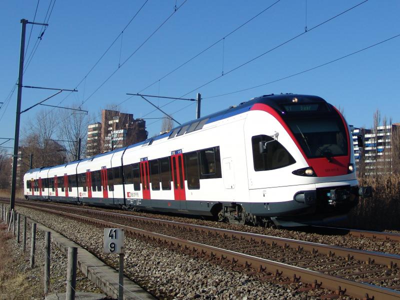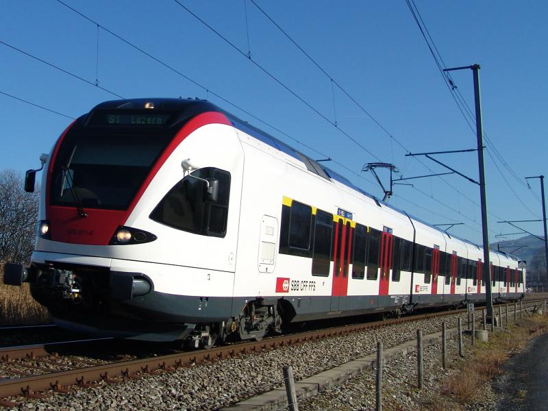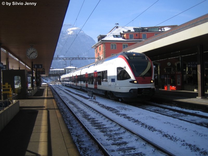 An Sonntagen wird die S3 Luzern-Brunnen mit Flirts bedient. Am 15.2.09 erreicht einer der beiden Flirts, der RABe 523 011-5, Arth-Goldau. Silvio Jenny