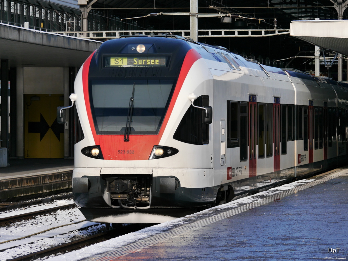 SBB - Triebzug RABe 523 032-6 bei der ausfahrt aus dem Bahnhof Luzern am 09.12.2017