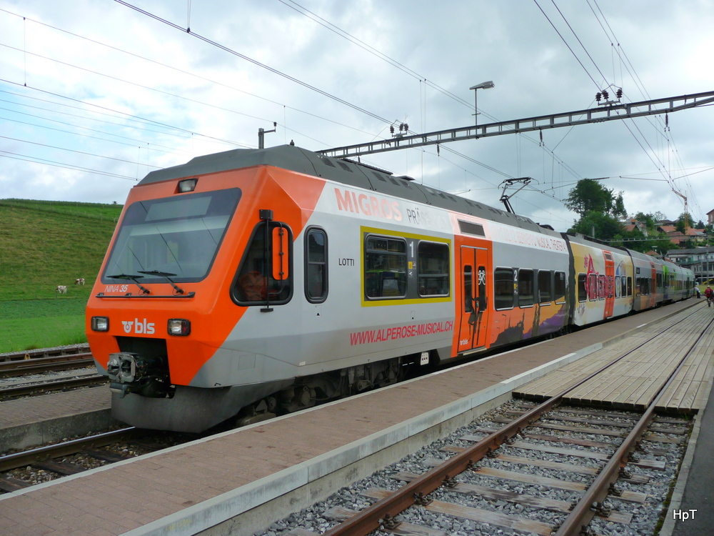 BLS - Triebzüge RABe 525 035-2 (Lotti) und 525 008 im Bahnhof Sumiswald-Grünen am 09.06.2012