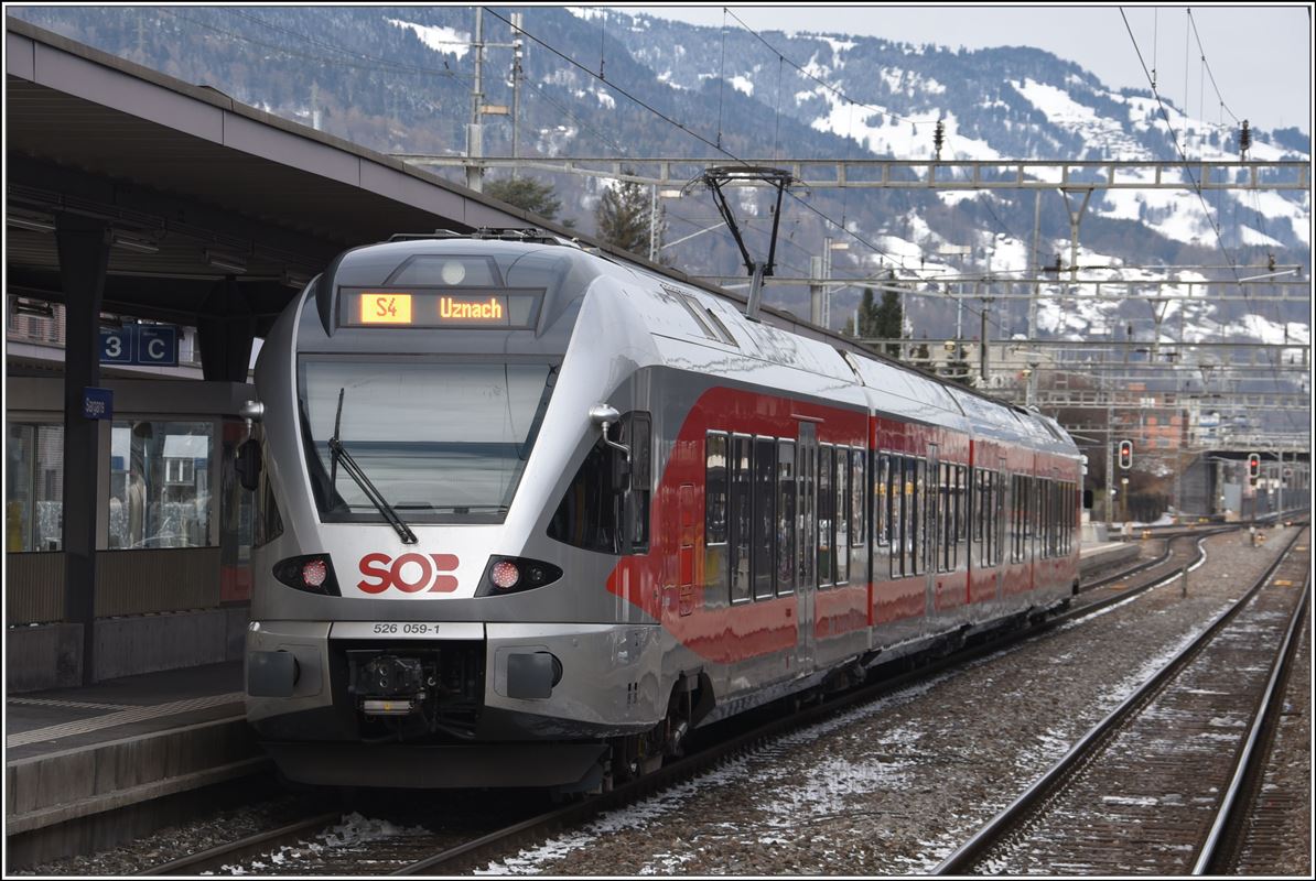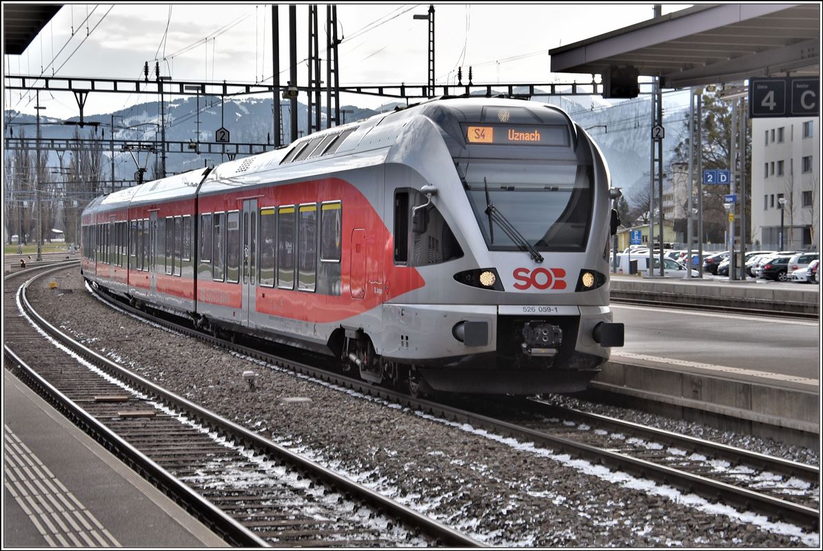 S4 526 059-1 in Heerbrugg. Im Hintergrund wegen der Föhnstimmung gut zu erkennen der Säntis 2505m. (04.04.2018)