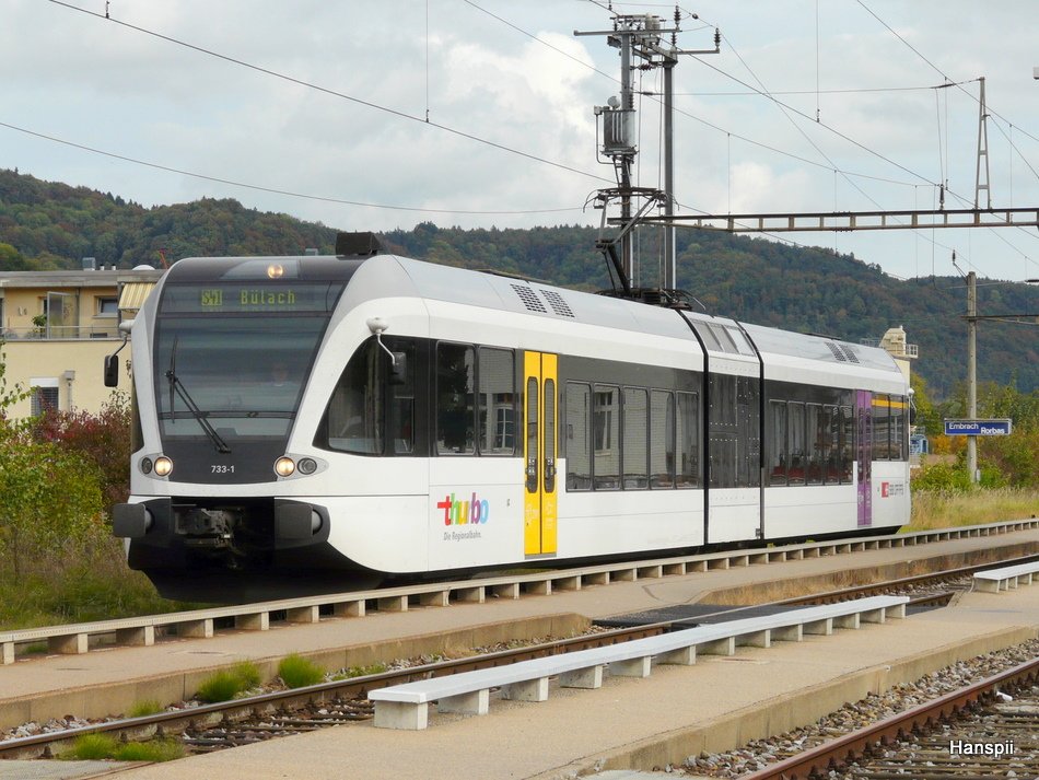 Der SBB Thurbo RABe 526 733-1 ist als S 87752 von Schaffhausen nach Erzignen kurz vor Neunkirch unterwegs.