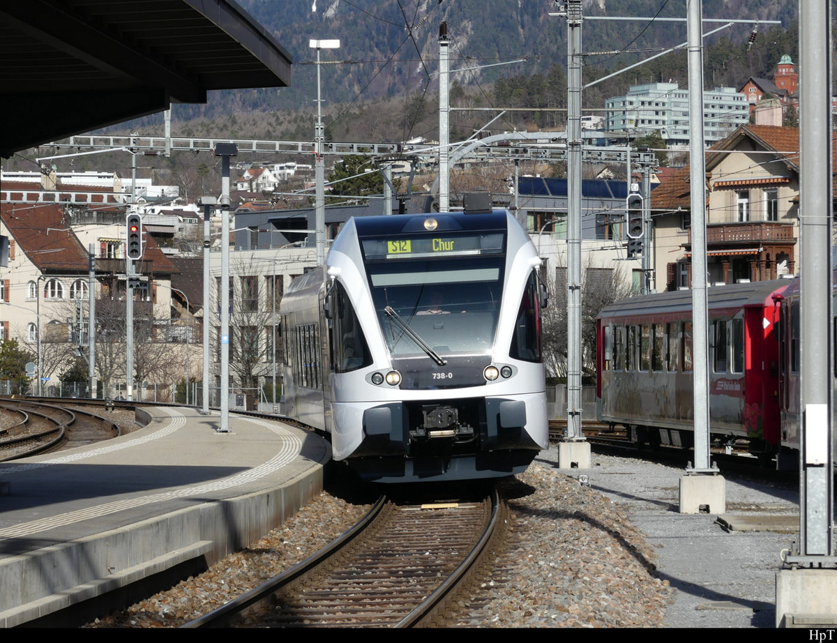 Thurbo / SBB  - Triebwagen RABe 526 738-0 bei der einfahrt im Bahnhof Chur am 19.02.2021