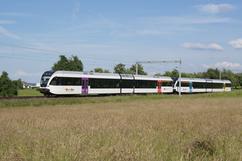 RABe 526 719-0 und RABe 526 743-0 verlassen am 28.5.11 Algetshausen-Henau Richtung Wil.