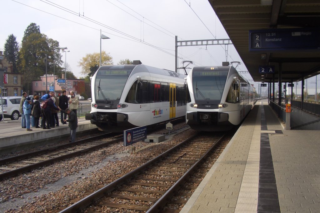 Ja was war denn da los? Ein Mann auf dem Gleis?! Ja, und zwar durften Blinde und Sehbehinderte in Kreuzlingen am 30.10.09 den RABe 526 706-7 "Simone Niggli-Luder" unter Anleitung von einem Thurbo-Angestellten ertasten. Daneben kam noch RABe 526 748-9 an.