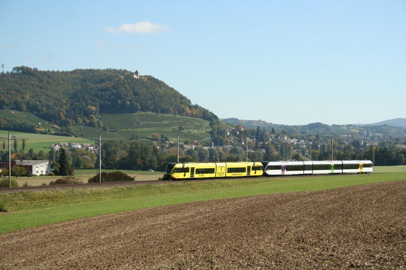 2 THURBO Triebwagen 526 707-5 und 526 785-1 am 5.10.2008 kurz vor der Einfahrt in Etzwilen.