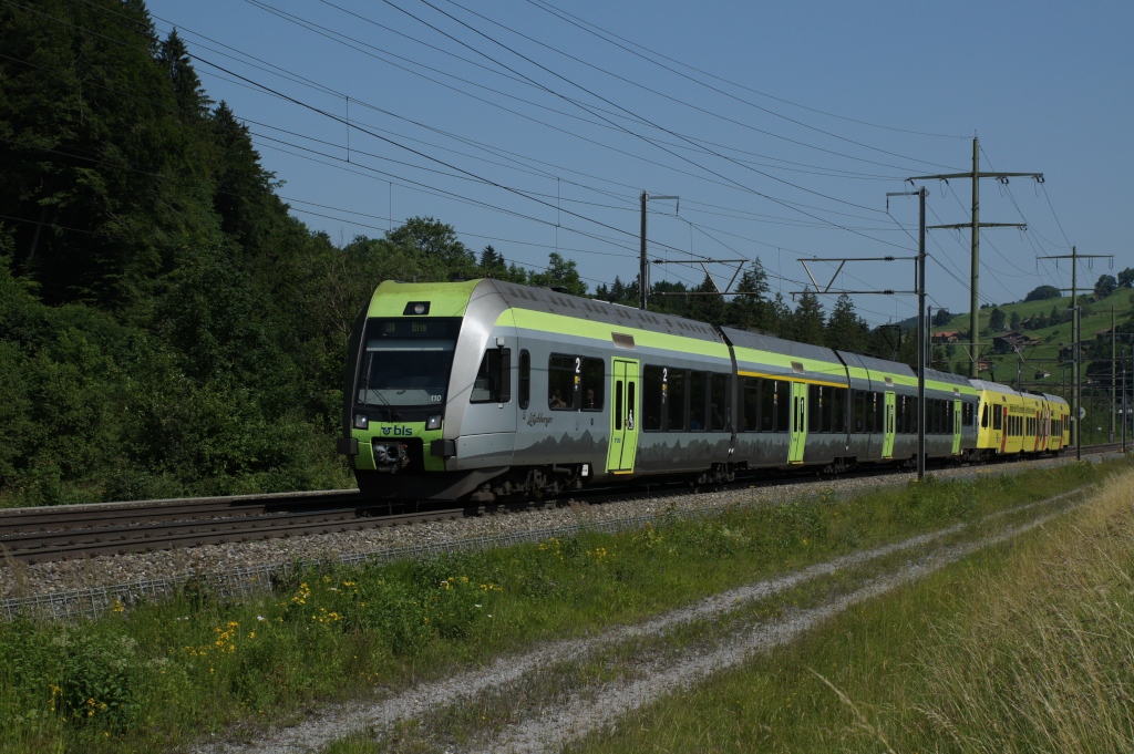bls - Triebzüge RABe 535 110-1 + RABe 535 ... unterwegs nach Brig bei Kiesen am 22.06.2012
