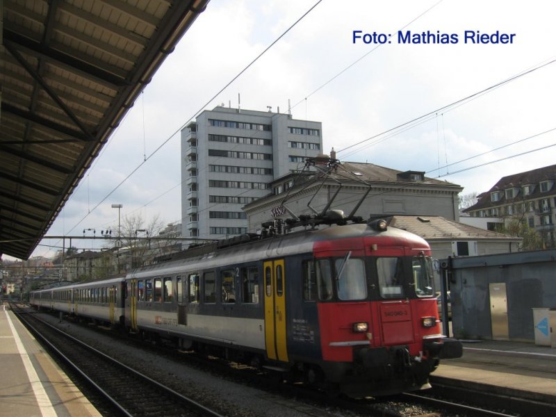 Der RBe 540 040-3 stand am 27.4.06 als S29 nach Stein a. Rh. in Winterthur. Dieses Bild wird bald Seltenheitswert haben, da die RBe 540 in der Region Winterthur immer mehr durch die Thurbo GTW's RABe 526 abgelöst werden.