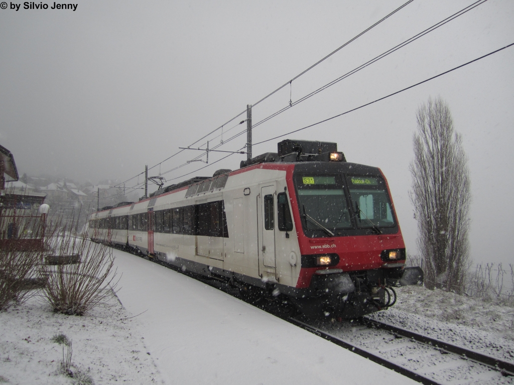 Auch im Winter kann der Train de Vigne entzücken. RBDe 560 275-0 (ex RBDe 560 108-3 ''Beinwil am See'') in Chexbres-Village.