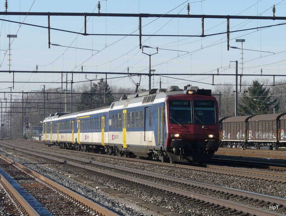 SBB - Regio von Biel nach Olten mit dem Triebwagen RBDe 4/4 561 003-5 bei der einfahrt in den Bahnhof Luterbach-Attiholz am 06.02.2011 Hp. Teutschmann