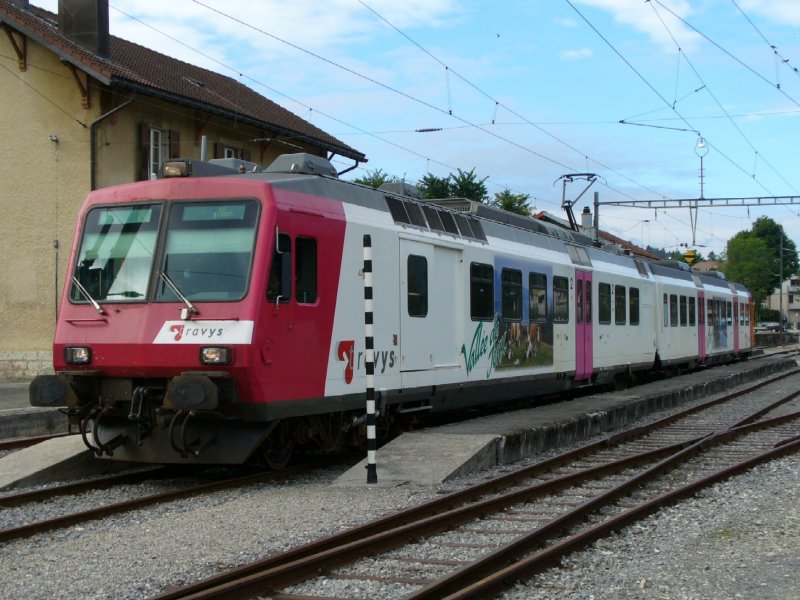 NPZ Steuerwagen Bt 985 mit Triebwagen RBDe 4/4 568 385-5 im Bahnhof von Le Pont am 03.09.2006