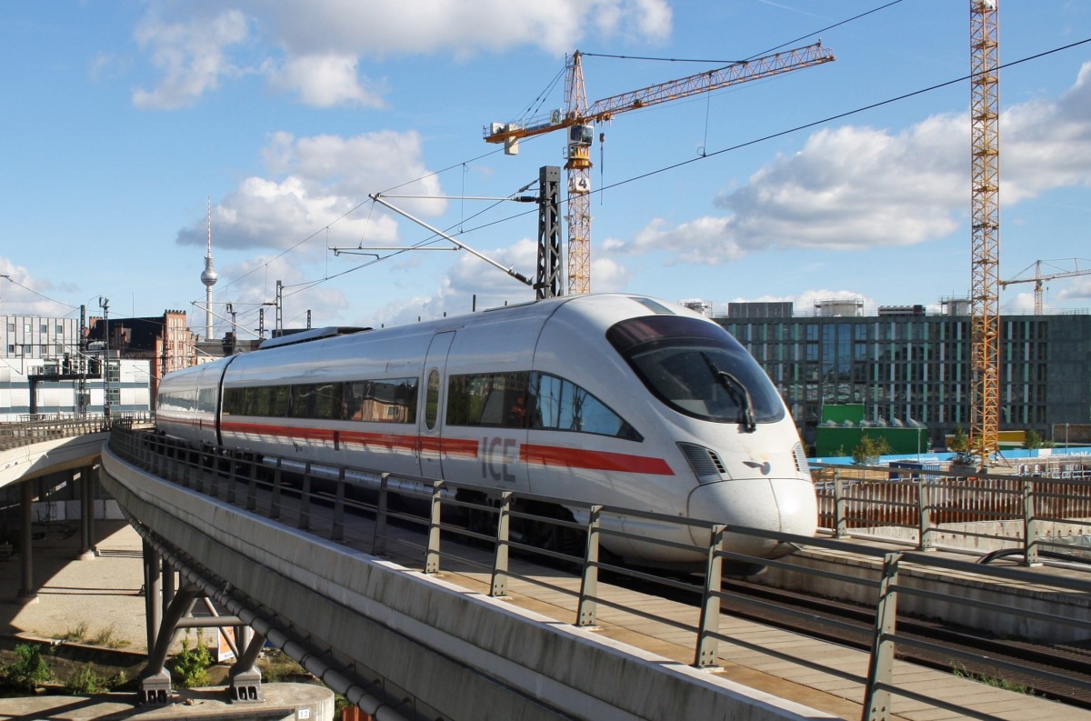 Hier 605 010-8 "Wehrheim (Taunus)" als ICE381 von Århus H nach Berlin Ostbahnhof mit 605 014-0 als ICE380 von Oesterport st nach Berlin Ostbahnhof, bei der Ausfahrt am 29.9.2013 aus Berlin Hbf. Alexander