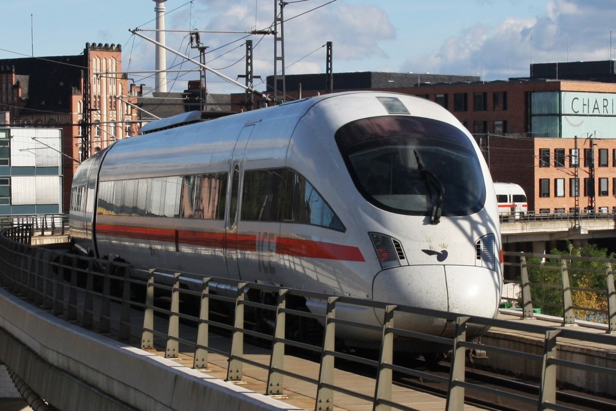 Hier 605 014-0 als ICE38 von Oesterport st nach Berlin Ostbahnhof mit 605 010-8 "Wehrheim (Taunus)" als ICE381 von Århus H nach Berlin Ostbahnhof, bei der Ausfahrt am 29.9.2013 aus Berlin Hbf. Alexander
