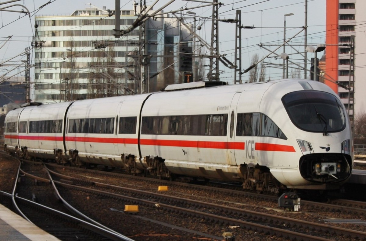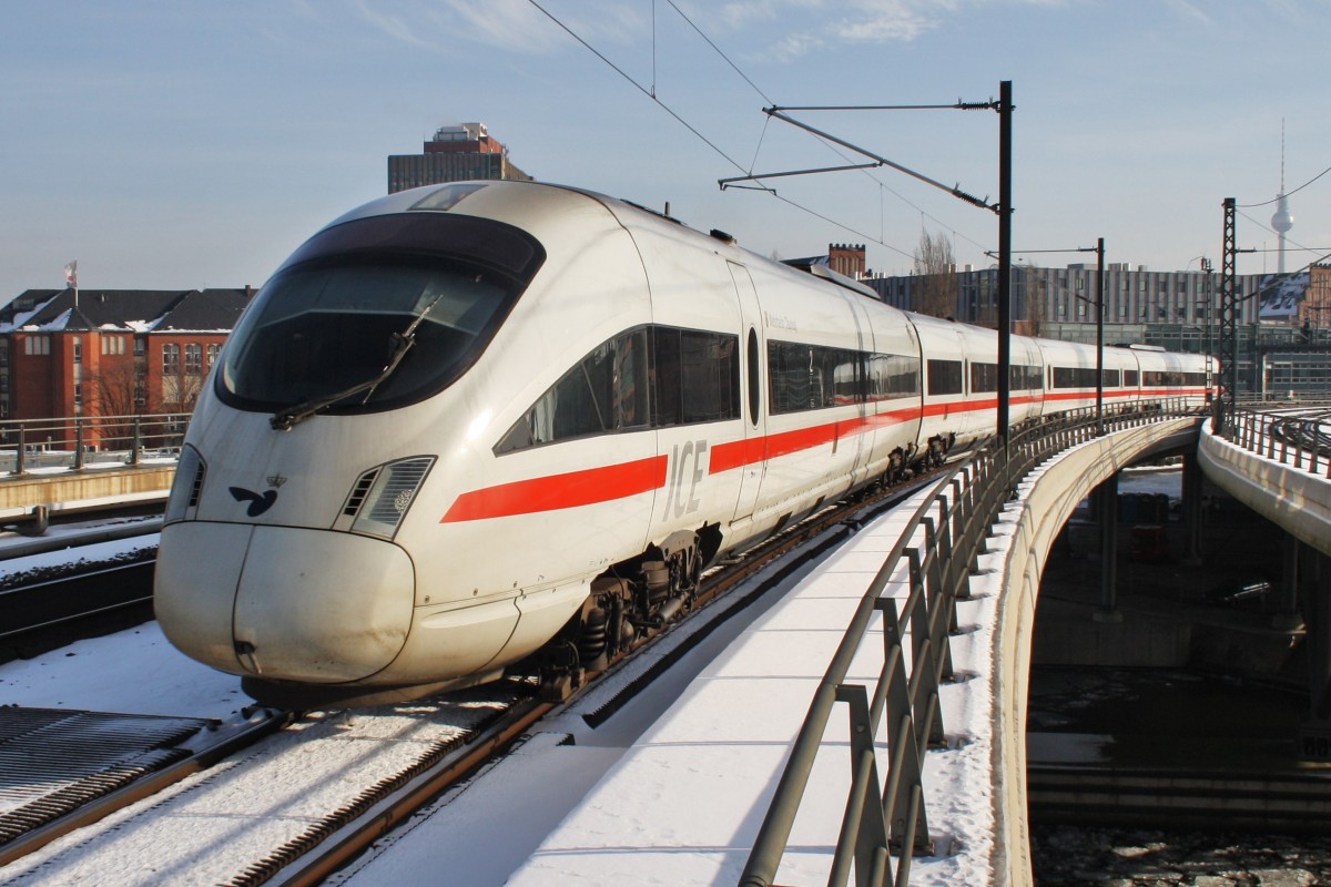 Hier links 605 010-8 "Wehrheim(Taunus)" als ICE38 von Koebenhavn H nach Berlin Ostbahnhof mit 605 503-2 als ICE381 von Aarhus nach Berlin Ostbahnhof und rechts 808 024-4 "Saalfeld/Saale" als ICE556 von Berlin Ostbahnhof nach Köln Hbf. mit 808 016-0 "Dessau" als ICE546 von Berlin Ostbahnhof nach Köln/Bonn Flughafen, diese beiden Triebzüge begegneten sich am 6.4.2012 in Berlin Hbf. Alexander