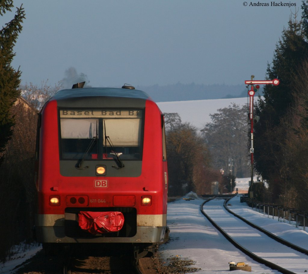 VT 611 044- 9 bei der Ausfahrt aus Rheinfelden ( Baden )
