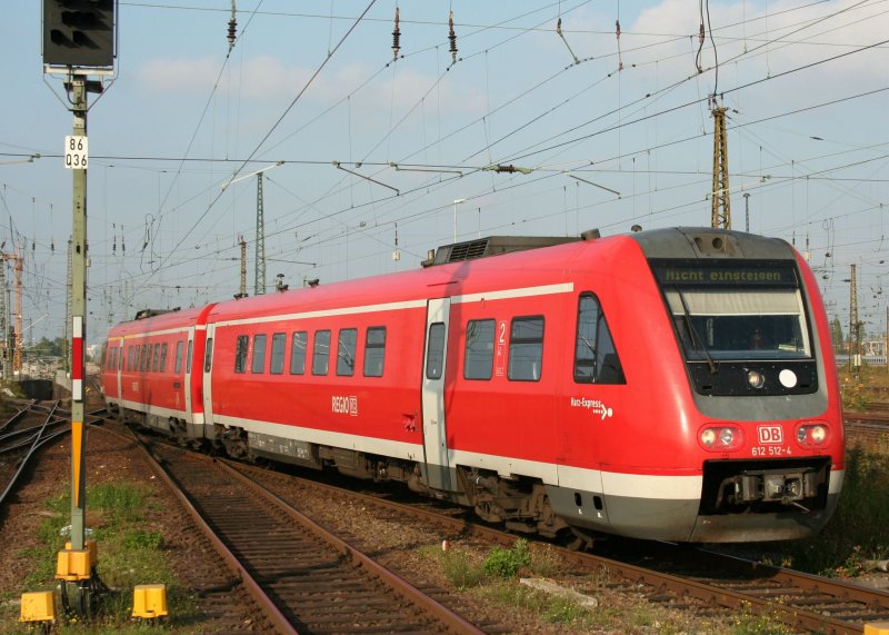 DB 612 512-4 am 12.9.2008 bei der Einfahrt in den Leipziger Hbf.
