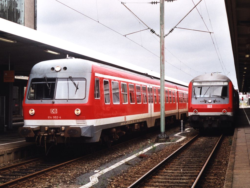614 002-4, 914 025-2 und 614 001-6 mit RB 24658 Braunschweig Hauptbahnhof-Göttingen Hauptbahnhof auf Braunschweig Hauptbahnhof am 23-7-2005. Bild und scan: Date Jan de Vries.