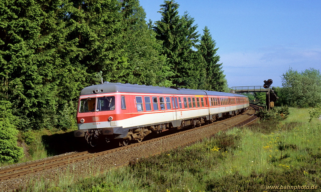 Am 22. Juni 1191 war der vierteilige 614 038-8 bei Martinlamitz unterwegs. Er hatte die Aufgabe, als N 5963 die Reisenden von Hof nach Weiden zu befördern.