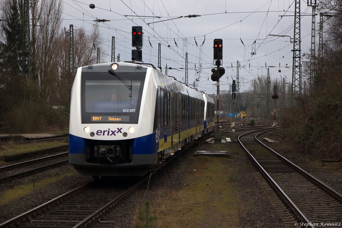 622 207-8 & 622 205-2 Heidekreuzbahn GmbH (erixx) als RB47 (erx83588) von Braunschweig Hbf nach Uelzen, bei der Einfahrt in Uelzen. 21.03.2015