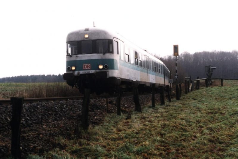 624 502-1/924 501-0/624 622-7 mit RB 12720 Münster-Coesfeld (RB 63 Baumbergebahn) in Poppenbeck am 3-1-2000. Bild und scan: Date Jan de Vries.