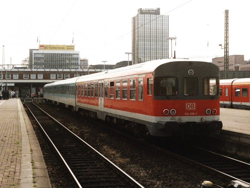 624 638-3/924 414-6/624 mit RB 72319 (RB 53 Ardey-Bahn) zwischen Dortmund und Iserlohn auf Dortmund Hauptbahnhof am 14-7-2001. Bild und scan: Date Jan de Vries.
