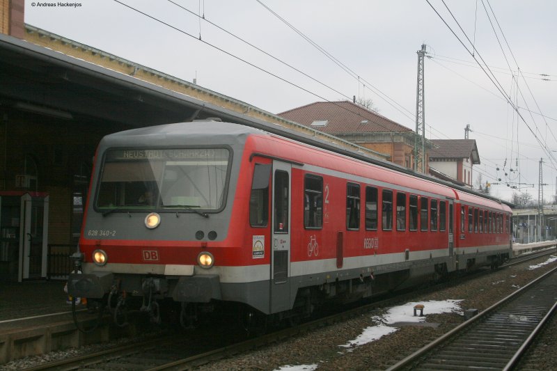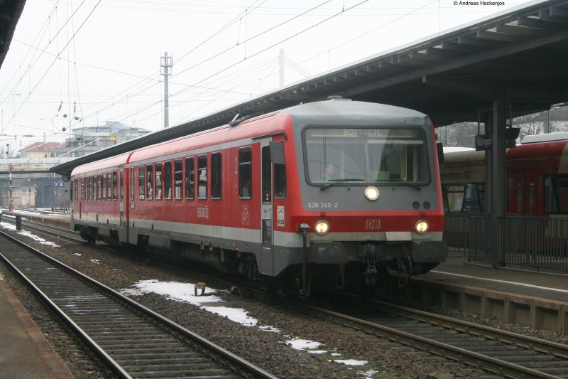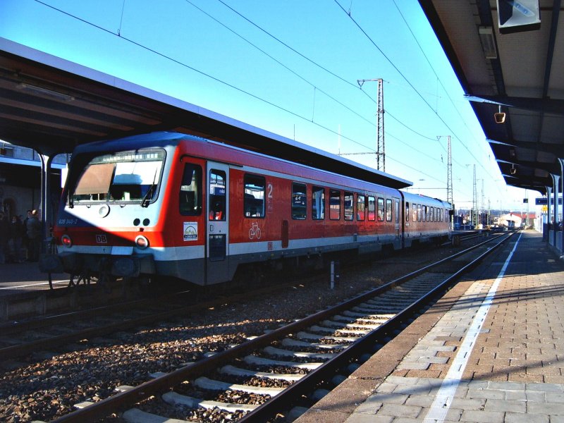 Baureihe 628 340-2 am 15.12.06 im Bahnhof Aalen. Dieser fuhr als RE 22542 von Ulm Hbf mit 4 min Zwischenhalt in Aalen nach Ellwangen.