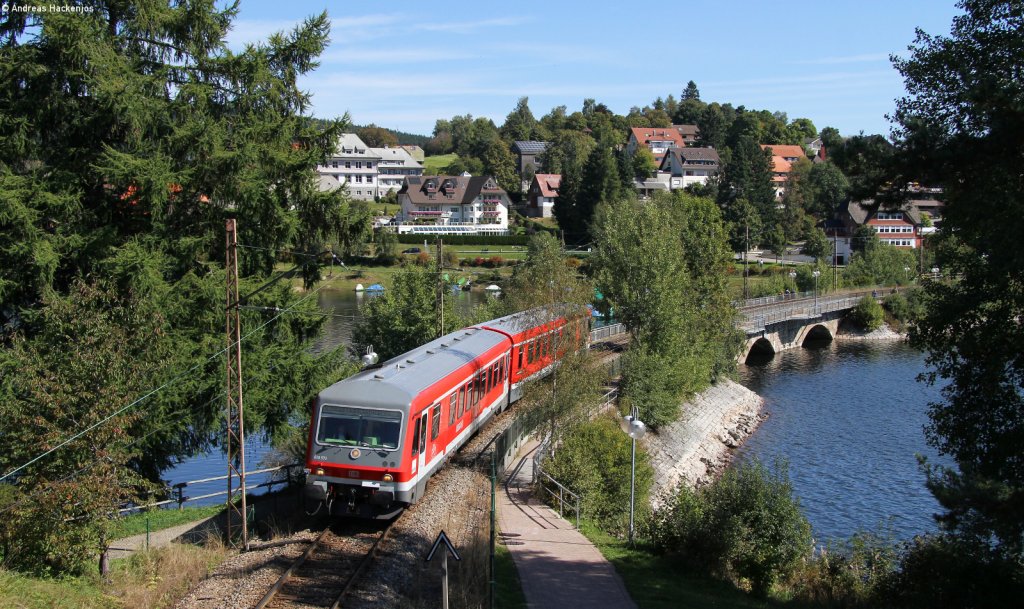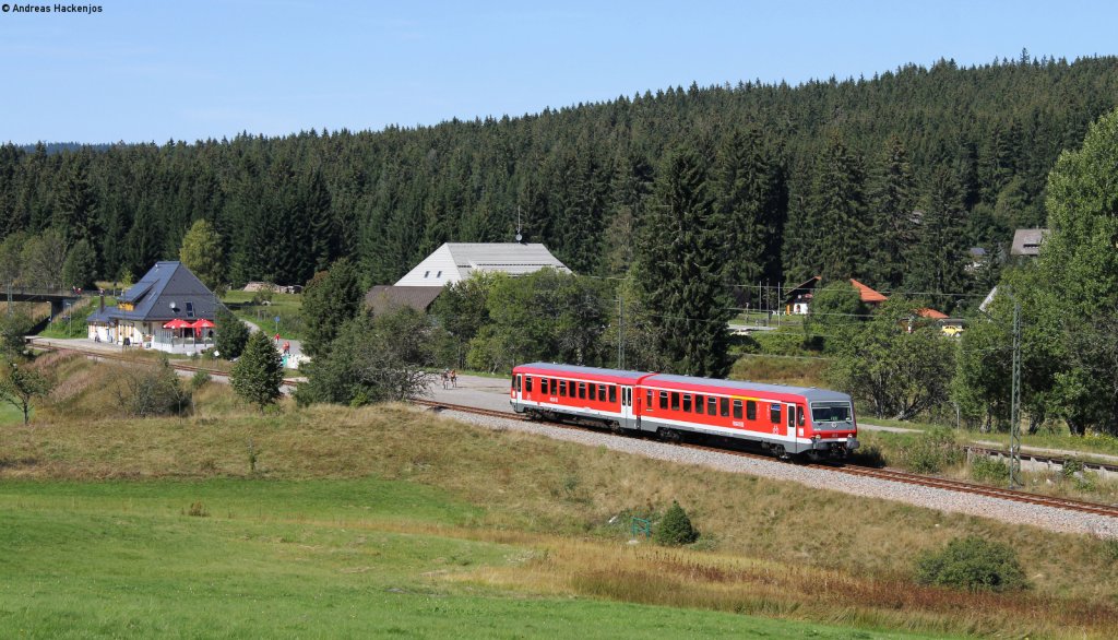 628 573-8 als RB 26959 (Titisee-Seebrugg) bei Bärental 16.9.12 Jedoch hat der Zug das falsche Ziel drin.