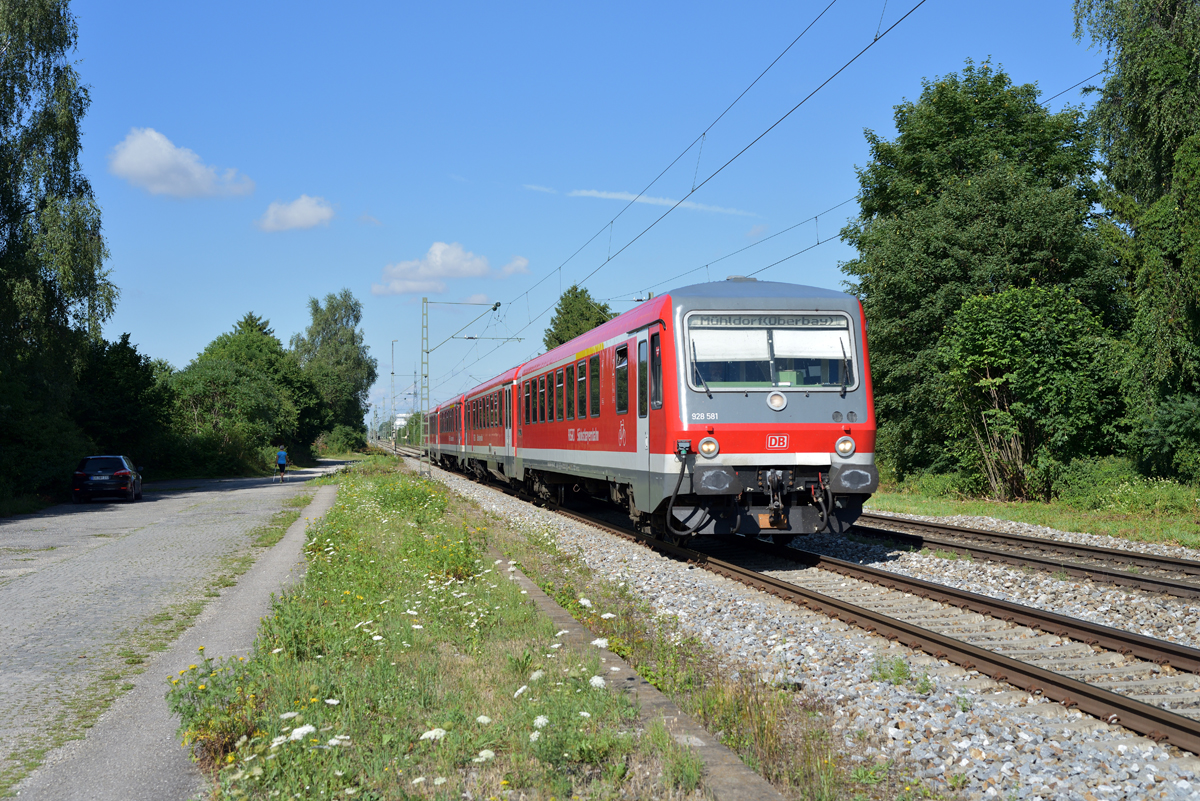 628 581-1 war am sonntäglichen Vormittag des 16.07.17 zusammen mit 628 432-7 von München Hbf nach Mühldorf unterwegs und wurde in Poing fotografiert. Stephan Möckel