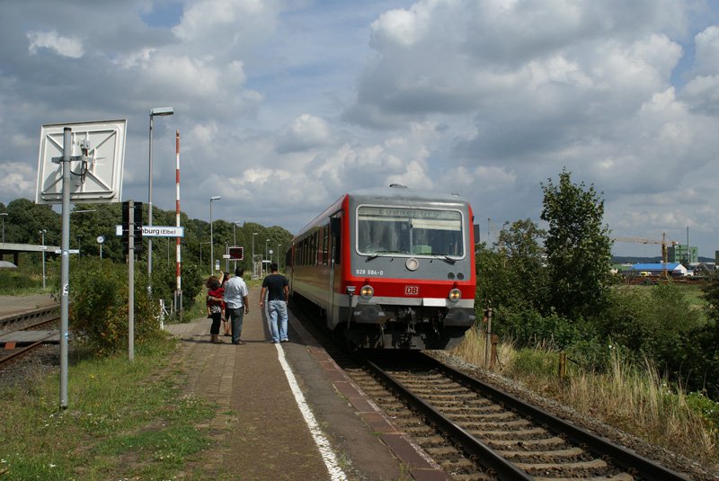 628 684-0 verlässt am 11.08.2008 den Bahnhof von Lauenburg als RB nach Lüneburg.