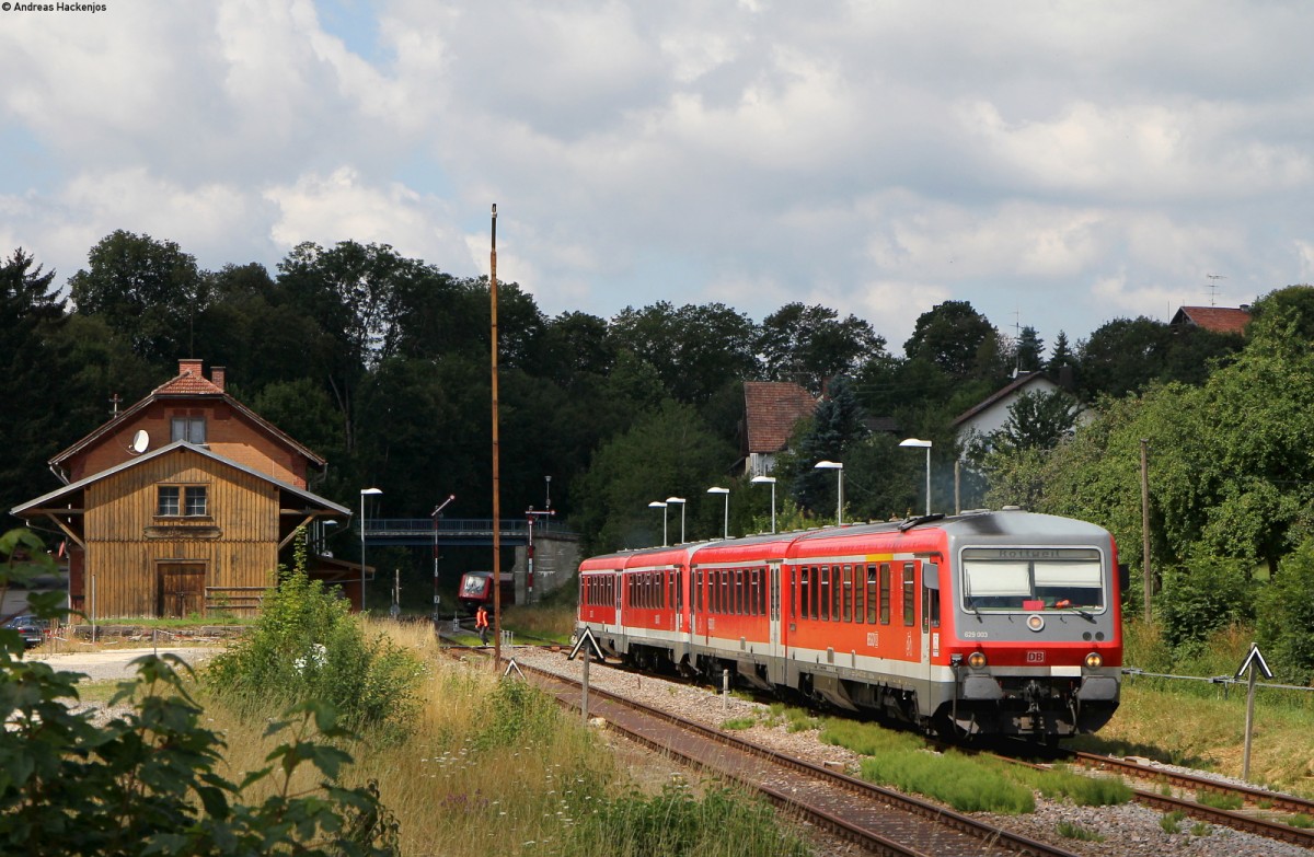 629 003-4 und 628 318-7/628 236-1 als RB 26919 (Titisee-Seebrugg) in Titisee 22.8.15