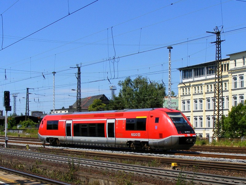 BR 641 032-8 Regionalbahn nach Sömmerda, sowie BR 143 816-7 vor Regionalbahn nach Saalfeld, aufgenommen am Samstag den 23.10.2004 um 8:15 Uhr im Bahnhof Großheringen. Dietmar Kallenberg