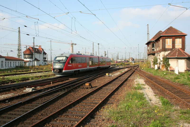 Regionalbahn nach Nossen mit 642 182-0 fährt am 12.9.2008 zwischen 2 Stellewrken in Leipzig Hbf ein.