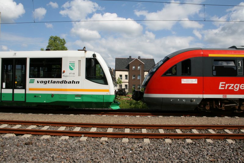 Dicht beisammen standen 642 201-8 der Erzgebirgsbahn und der VT48 der Vogtlandbahn.16.05.09. Steffen Eule