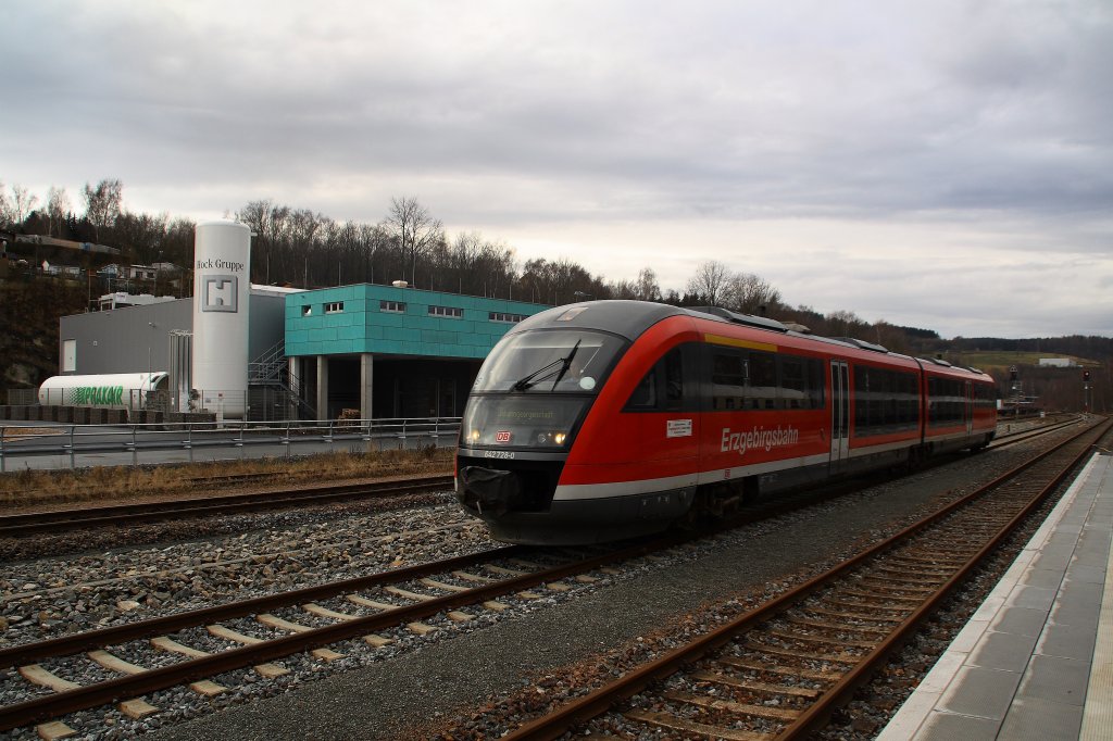 642 728-0 fährt am 06.12.09 in den Bahnhof Schwarzenberg ein.