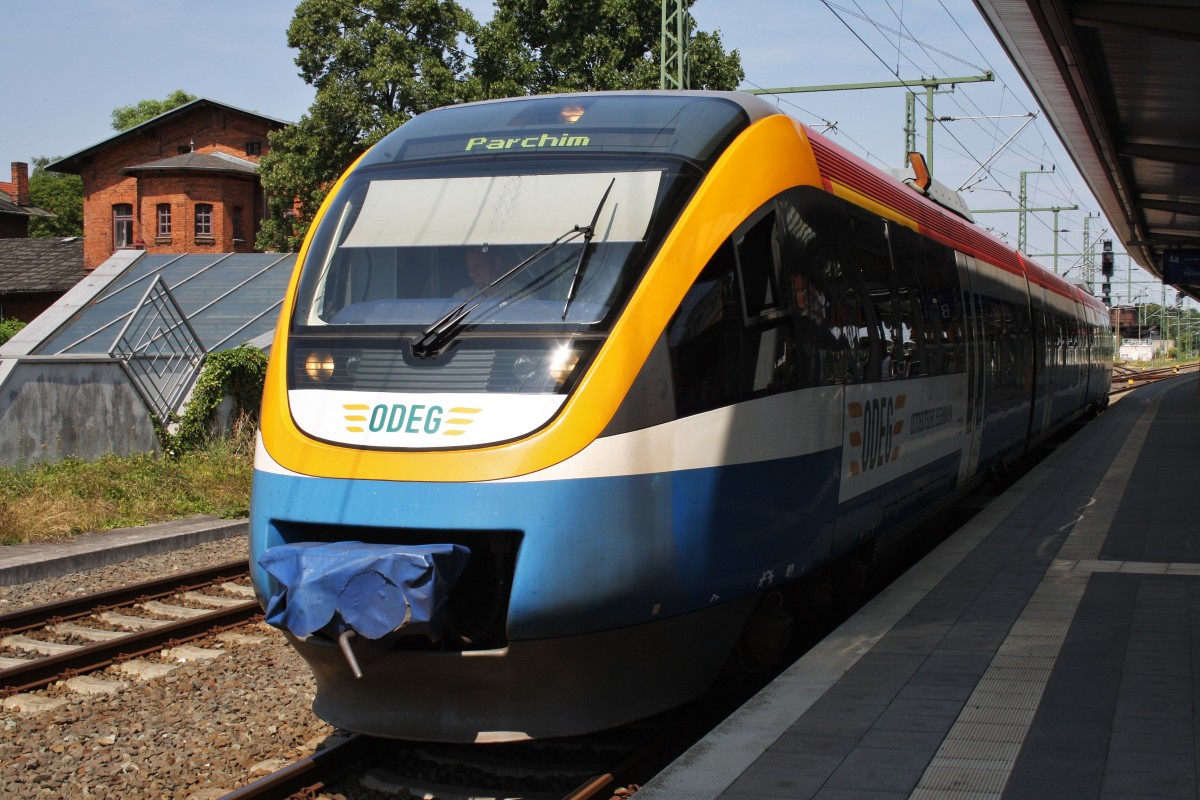 Der VT 643.05 der PEG (643 362-6, 943 362-3 und 643 862-5) wartet am 22.06.2012 in Oranienburg auf seinen Einsatz, um in knapp einer Stunde als RB 28779 nach Berlin-Lichtenberg zu fahren. Ein Teilstück der RB 12 wird zu diesem Zeitpunkt im SEV bedient. Heinz Lahs
