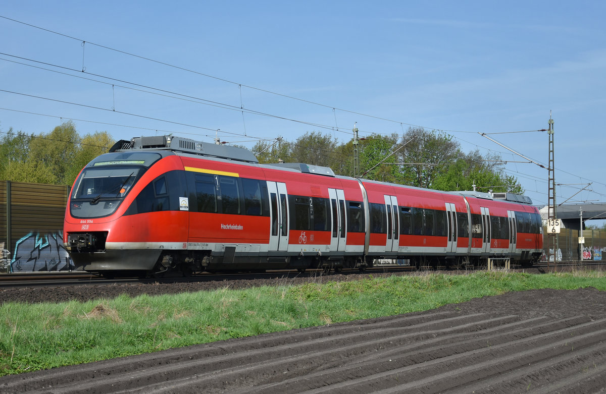 Mal wieder ein seltener Gast auf der KBS 110. 644 054-8 der HochRheinBahn bei der Überführung in Richtung Hamburg unterwegs. Höhe Bardowick, 27.04.2018.