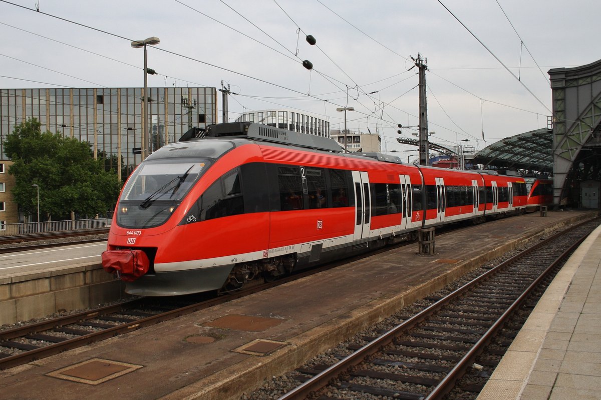644 003-5 und 644 527-3 fahren am 16.8.2017 als RB38 (RB11826) "Erftbahn" von Köln Messe/Deutz nach Düsseldorf Hauptbahnhof aus dem Kölner Hauptbahnhof aus.