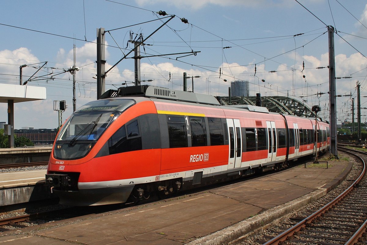 644 003-5 und 644 527-3 fahren am 16.8.2017 als RB38 (RB11826)  Erftbahn  von Köln Messe/Deutz nach Düsseldorf Hauptbahnhof aus dem Kölner Hauptbahnhof aus.